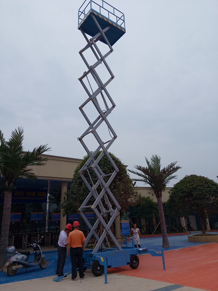 热烈祝贺长沙水上乐园订购SJY0.5-12米移动升降平台成功